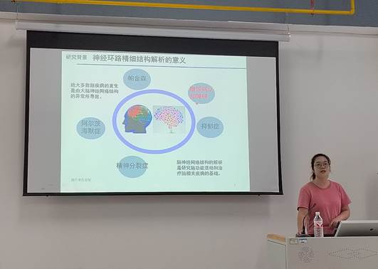 接着,生物医学工程与医学影像学院刘钰蓉老师围绕《糖尿病认知障碍小鼠相关神经环路研究》,分享了团队在糖尿病并发症领域的突破性发现。研究以小鼠前额叶皮层为模型,通过双色荧光蛋白病毒工具与高精度成像技术,首次揭示了糖尿病模型小鼠在神经环路和血管网络层面的异常特征。这一成果为理解糖尿病认知功能障碍的发病机制提供了神经生物学证据,为临床干预提供了潜在靶点。