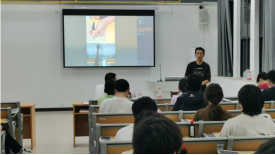 随后,授课教师裴浩为同学们带来了一节别开生面的毛笔字知识课堂。他从毛笔结构开始介绍,又讲到汉字的历史渊源、基本笔法,再讲到不同字体的特点与书写技巧,深入浅出的讲解让同学们对毛笔字有了更深入的认识。